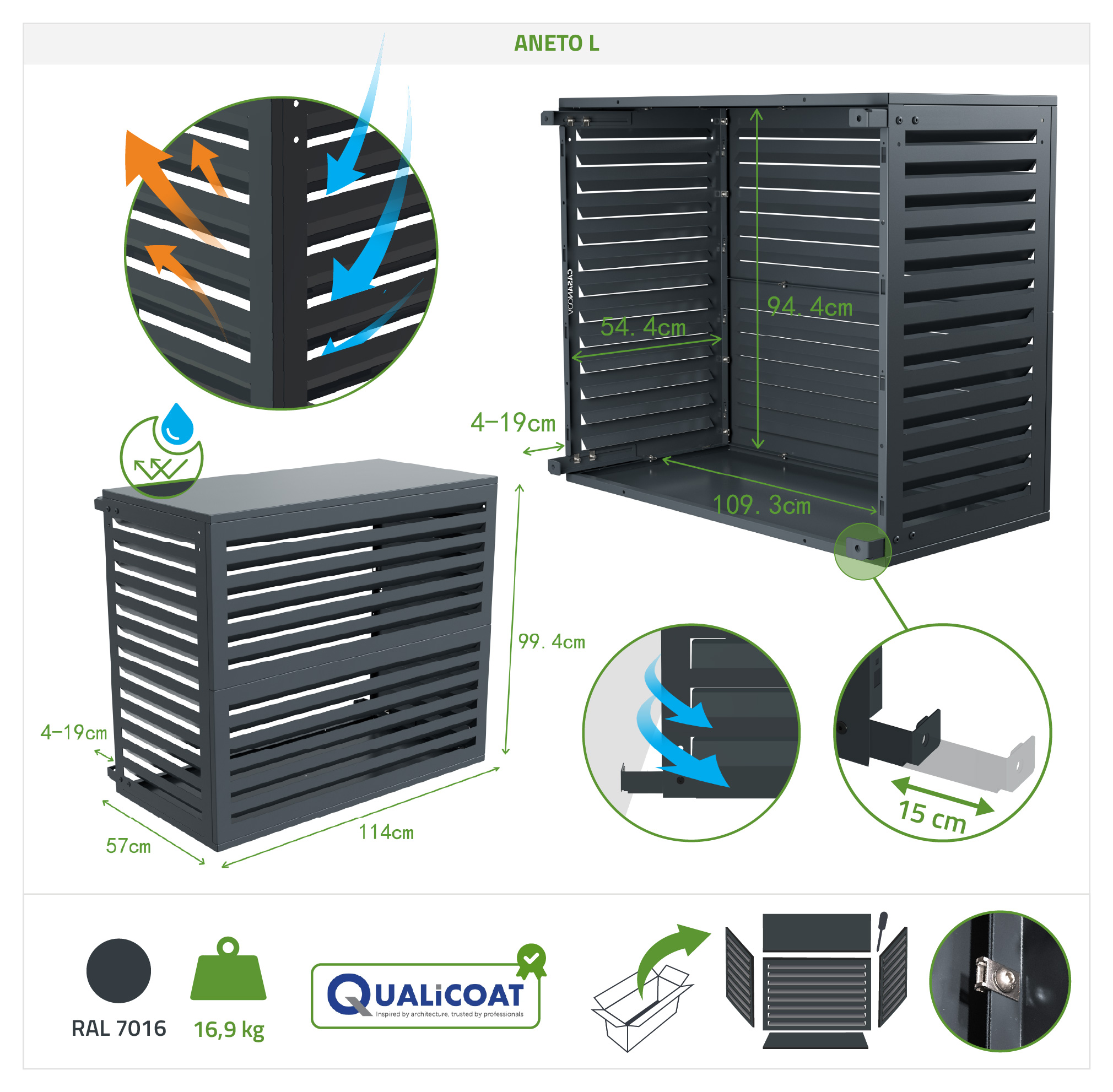 Ilmalämpöpumpun Ja Ilmastointilaitteen Suojakotelo ANETO Alumiini Harmaa - Alapaneeli - Ko